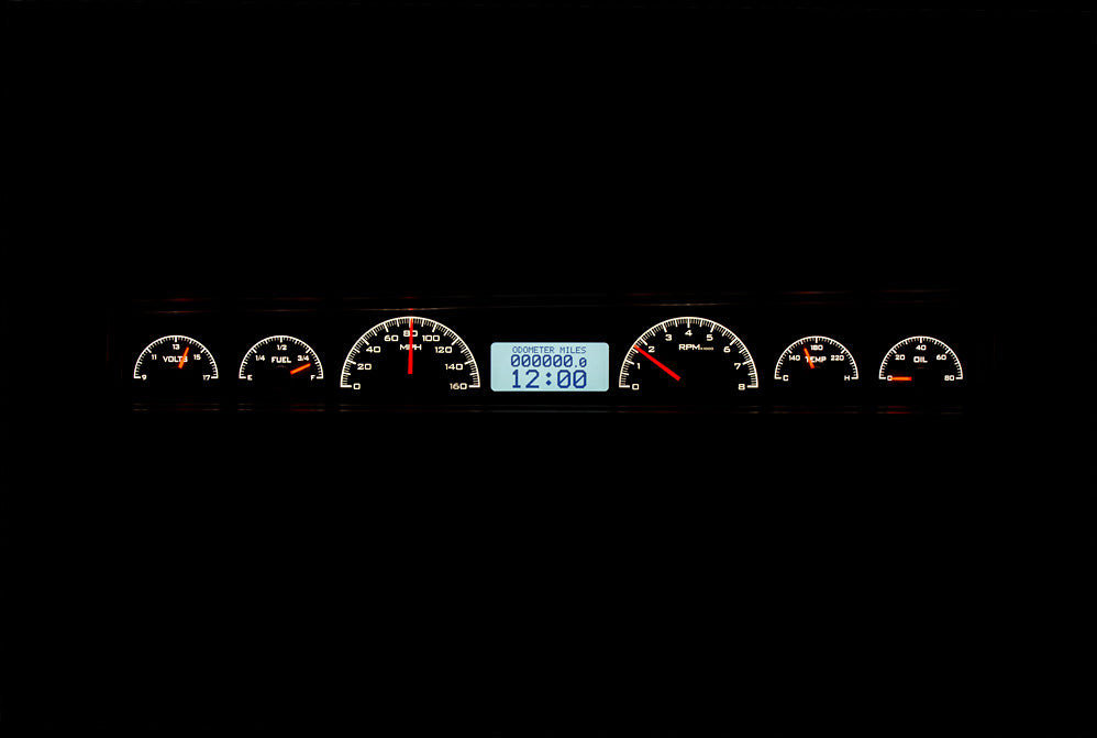 Fully lit needles, backlit faces, and highly visible LCD message centers are a few of the things that you can see which set the VHX Series apart from yesterday’s traditional approach to instrumentation. A few of the features which you don’t normally see are the micro-controlled precision stepper motors, solid state sensors for unparalleled accuracy, and user-customizable display feedback, all supported by an unrivaled limited lifetime warranty which has become the standard for Dakota Digital instrumentation systems . Completely engineered and manufactured at our facility in Sioux Falls, South Dakota, the VHX Series has completely revolutionized the instrumentation industry!